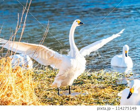 首都圏の荒川で越冬する優雅で美しい白鳥たち