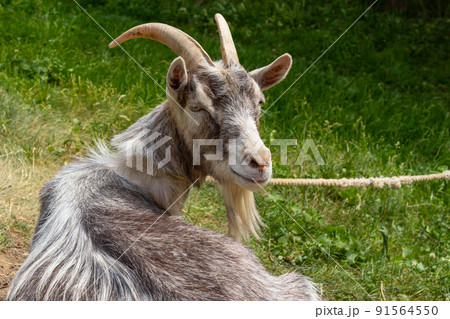 Portrait of a goat on a farm in the village.