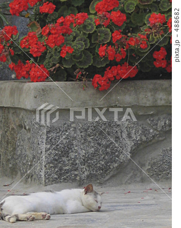 ギリシャの猫と花