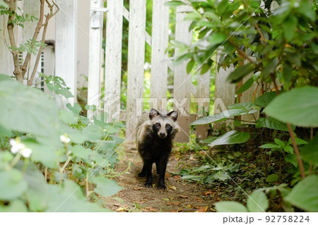 庭でタヌキと出会った
