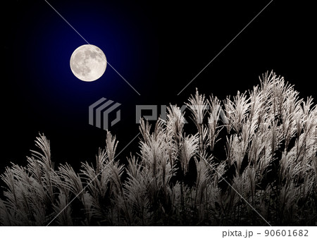 風になびくススキ野原 – 黄金色に輝く秋の風..