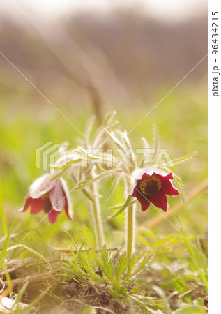 早春の河原、斎藤茂吉が愛した日本の野草翁草。(自生)