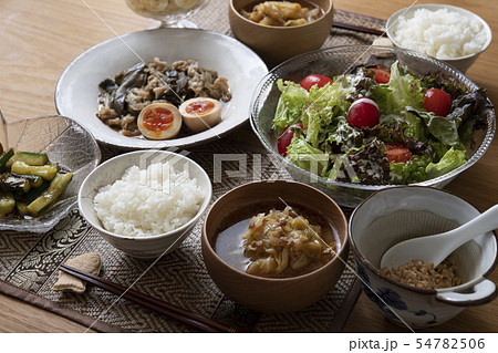豚肉と茄子の炒め物がメインの食卓