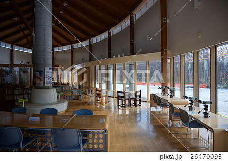 桂坂野鳥遊園の観鳥楼 野鳥観察するための窓がある建物内の風景 京都市西京区