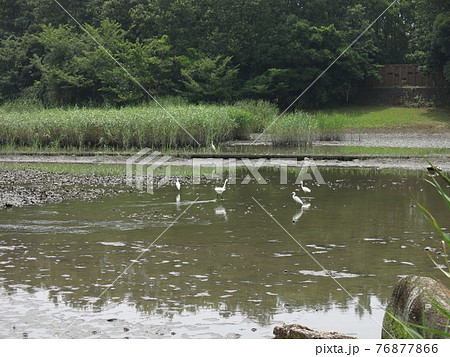 愛知県弥富市 弥富野鳥園の展望ベランダから眺める保護地の池