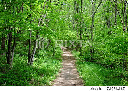 東京都 木道が整備された小宮公園 新緑の大谷弁財天