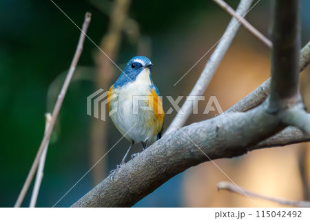幸せの青い鳥、可愛いルリビタキ(ヒタキ科)。 日本国東京都文京区、小石川植物園にて。 2024年新