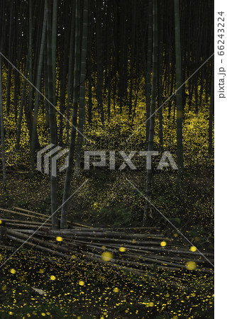 竹林を舞うヒメボタル。夏イメージ。