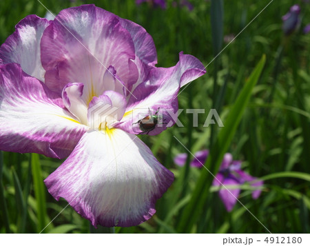 こじま花の会花畑の紫色の紫陽花に来たコガネムシ