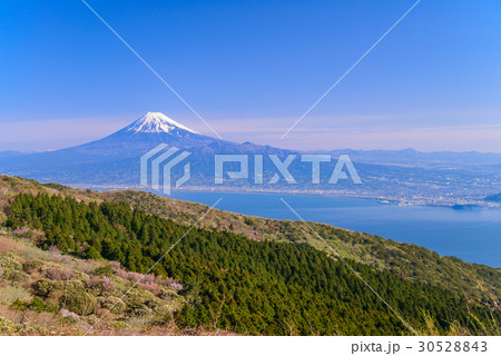 (静岡県)山ツツジ咲く達磨山高原から駿河湾越しの富士山