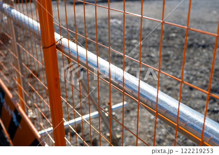 Portable sectional fence close-up. Mobile metal fences made of stainless steel.