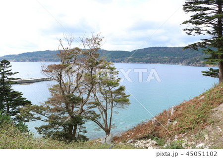 金華山黄金山神社参道から牡鹿半島と金華山瀬戸を望む