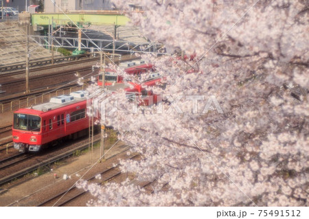 金山公園の満開の桜と名鉄電車