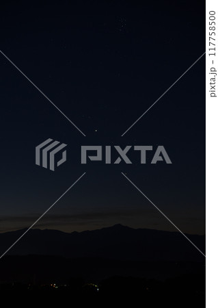 北杜市白州から見る金峰山上に高く昇った木星とおうし座と昴