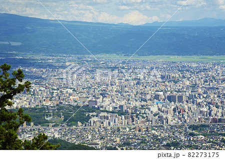 熊本市「金峰山の山並みを背景に世安町交差点付近から市街地風景」2022年(2月)