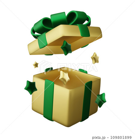 Realistic holiday design with open Gift box. 3d render object. Holiday banner, web poster, greeting card. vector illustration