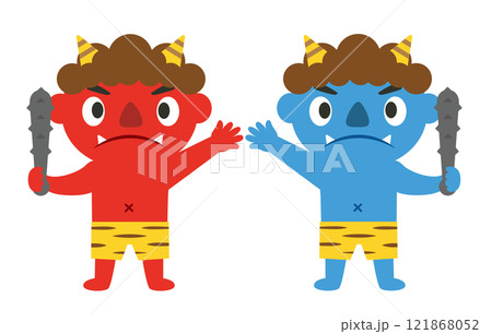 節分 赤鬼と青鬼のキャラクター 全身 イラスト
