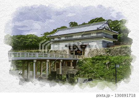 水彩画風 金沢城 橋爪門続櫓 石川県金沢市