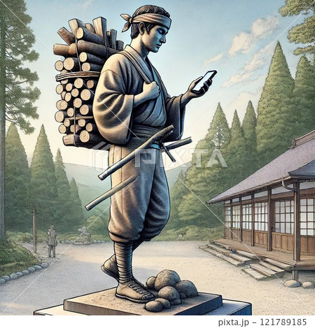 勤勉の象徴である二宮金次郎の像【切り抜き】