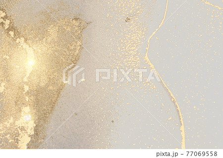 Pale grey and gold stone marble texture with glowing lights. Alcohol ink technique