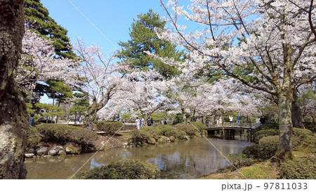 金沢兼六園の桜と小川