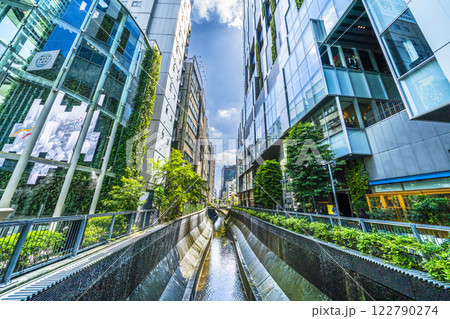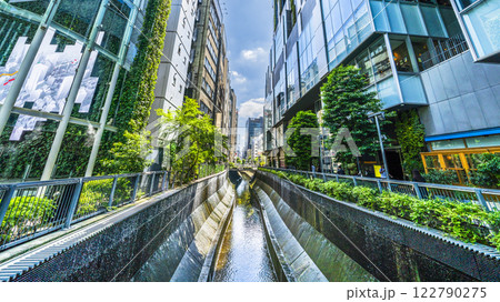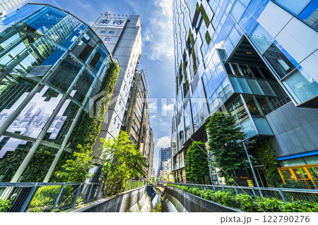 東京の都市風景 渋谷川沿いの高層ビル群を見上げる【東京都・渋谷区】