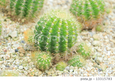 緑の金盛丸というサボテンが植わっている風景