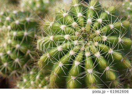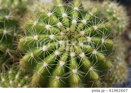 緑の金盛丸というサボテンのアップの風景