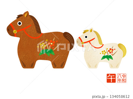 年賀状 年賀2026 馬 午 午年 うま 墨絵 筆文字 水墨画 漢字 文字 デザイン イラスト素材