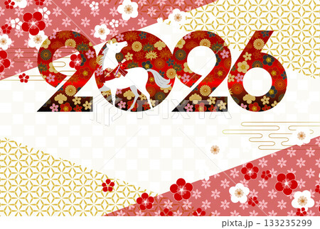 日本のお正月素材セット2026午年バージョン_和風モダンな年賀状、広告フレーム、アイコンなど