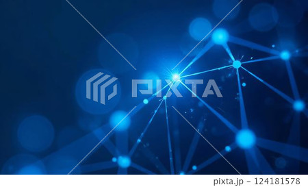 Abstract depiction of digital network nodes, connected and glowing, suggesting advanced technology and future developments.