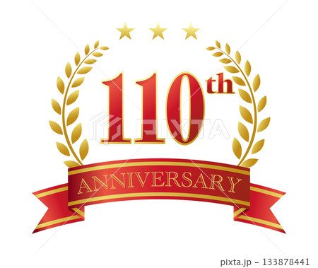 110周年記念のアイコン。赤いリボンと装飾フレーム。