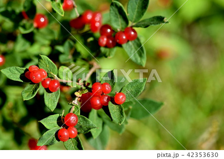 自然 植物 キンギンボク、七月の果実。艶々の赤い実は美味しそうですが猛毒、口にしてはいけません