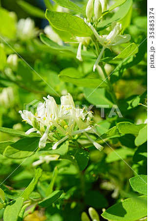 自然 植物 キンギンボク、花の色が白から黄色に変化。同じ枝で二色の花を楽しめます