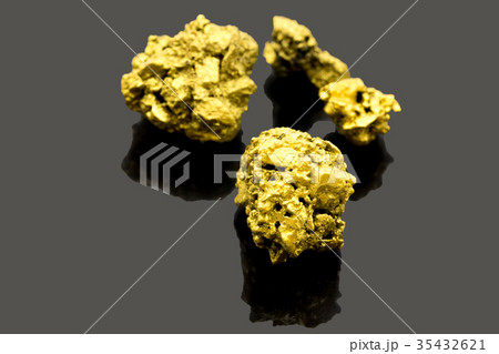 The pure gold ore found in the mine on black