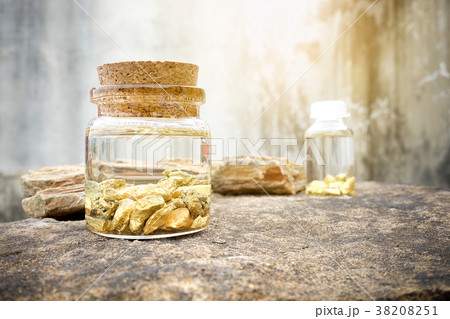 Pure gold ore found in mines.Put in a glass bottle