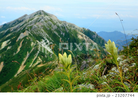 北アルプス・針ノ木岳のトウヤクリンドウと蓮華岳