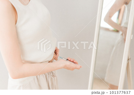 お腹をつまんでインスリン注射・ダイエット注射・不妊治療薬を注射する女性