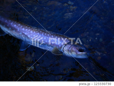 釣り 釣り針に掛かったアメマス 大きい 雨鱒
