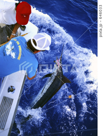 釣り上げられるカジキ