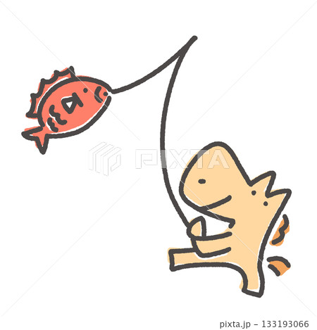 鯛を釣り上げて喜ぶ馬 正月素材 手描き
