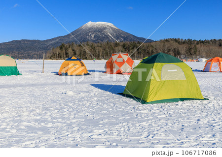 北海道_真冬の阿寒湖と雄阿寒岳の風景