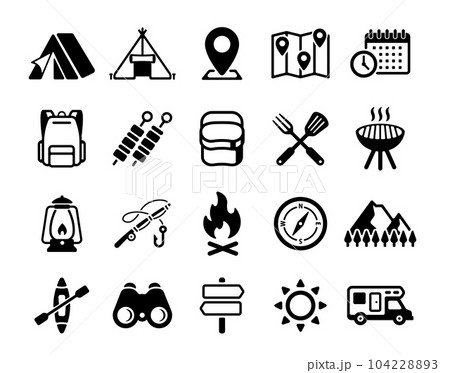 キャンプ・バーベキュー・アウトドア ベクターアイコンイラストセット