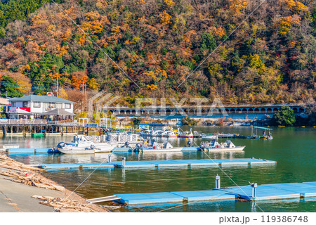 神奈川県 秋の相模湖 遊覧ボート乗り場