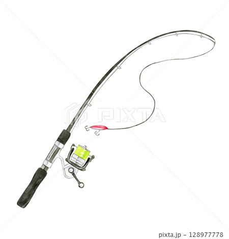 海釣り 魚釣り 釣り竿 ロッド 水彩 イラスト