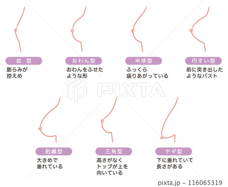 女性のバスト・乳房の形の種類のイラスト シンプルタッチ