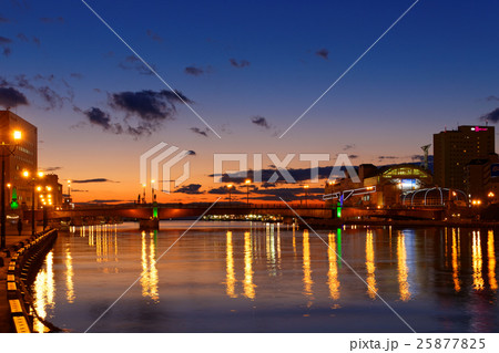 夕暮れの幣舞橋とフィッシャーマンズワーフ