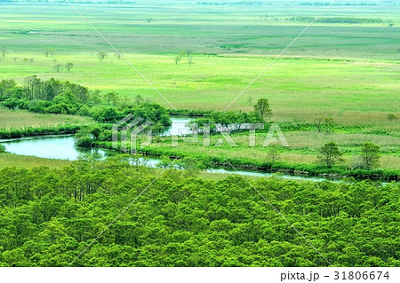 新緑の大草原 釧路湿原国立公園の温根内木道