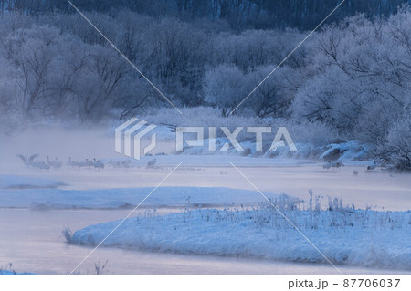 霧氷と気嵐とタンチョウ
