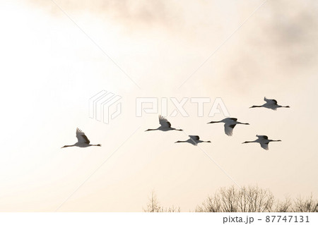 タンチョウ群飛